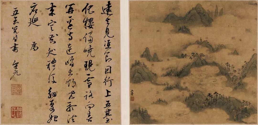 明陳繼儒《霧村圖》、董其昌《仙壇記》書畫合卷,上海博物館藏
