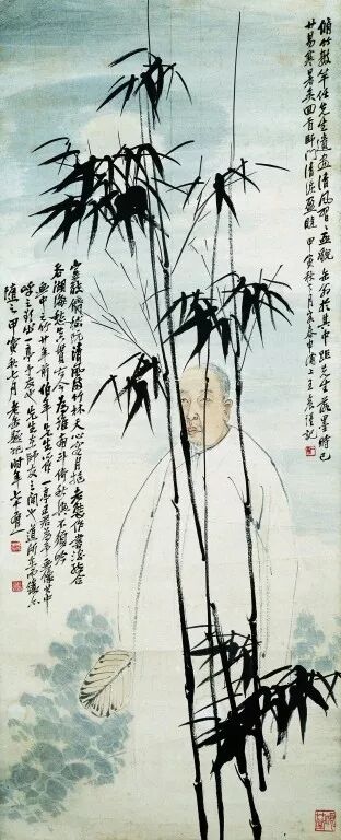 任伯年繪墨竹,王震補繪吳昌碩小像,吳昌碩題