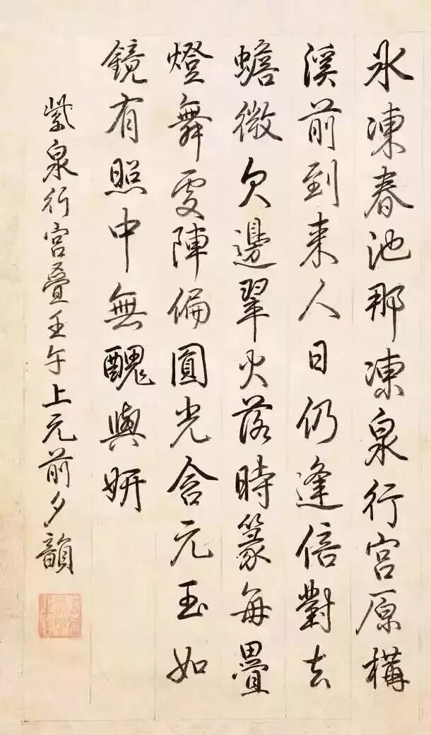 每歲進呈春帖子詞,例賜此筆,而得者或不知用法,往往置之高閣。用違其材,良可慨夫。鹹豐九年(1859)上元,書於濟南節署。玉牒崇恩。