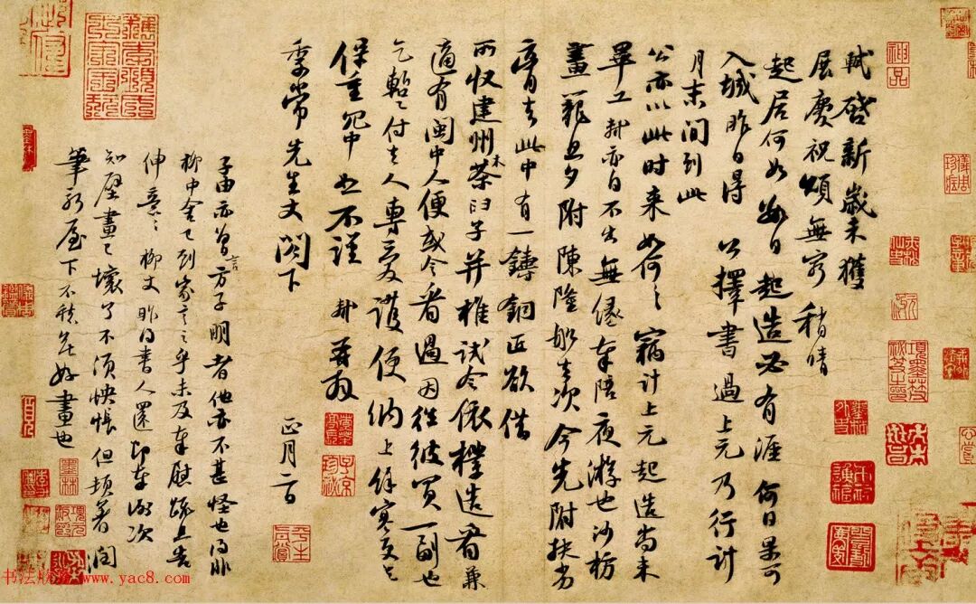 釋文丨軾啟:新歲未獲展慶,祝頌無窮,稍晴起居何如?數日起造必有涯,何日果可入城。昨日得公擇書,過上元乃行,計月末間到此,公亦以此時來,如何?竊計上元起造,尚未畢工。軾亦自不出,無緣奉陪夜遊也。沙枋畫籠,旦夕附陳隆船去次,今先附扶劣膏去。此中有一鑄銅匠,欲借所收建州木(此字旁注)茶臼子並椎,試令依樣造看兼適有閩中人便。或令看過,因往彼買一副也。乞蹔付去人,專愛護便納上。餘寒更乞保重,冗中恕不謹,軾再拜。季常先生文閣下。正月二日。