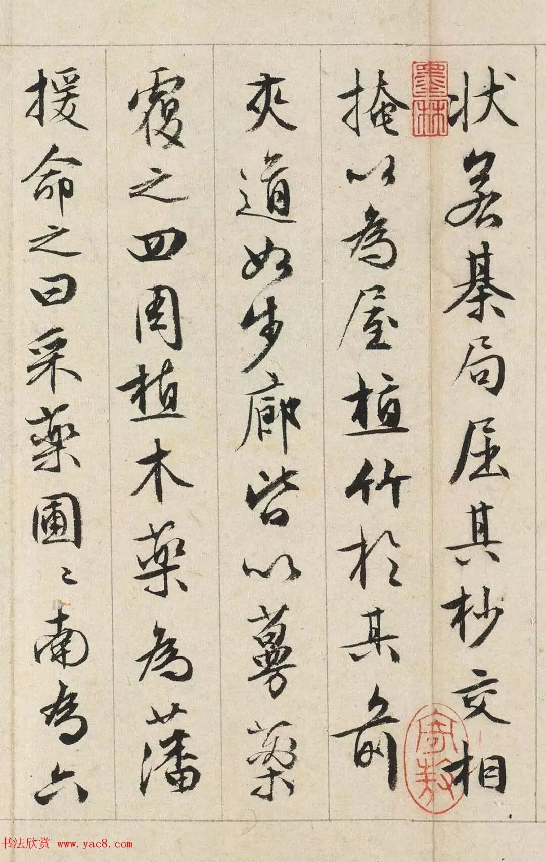 文徵明書司馬光《獨樂園記》,來源:明代仇英繪《獨樂園圖》卷後拖尾,美國克利夫蘭藝術博物館藏。