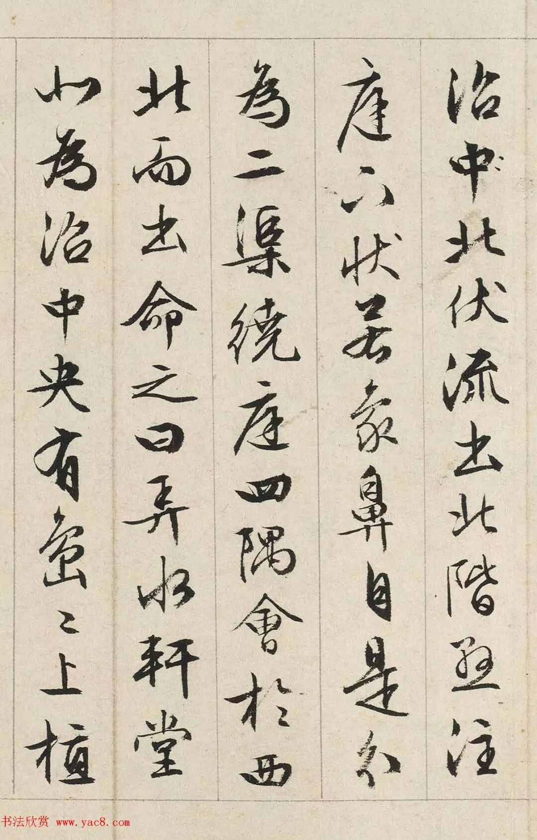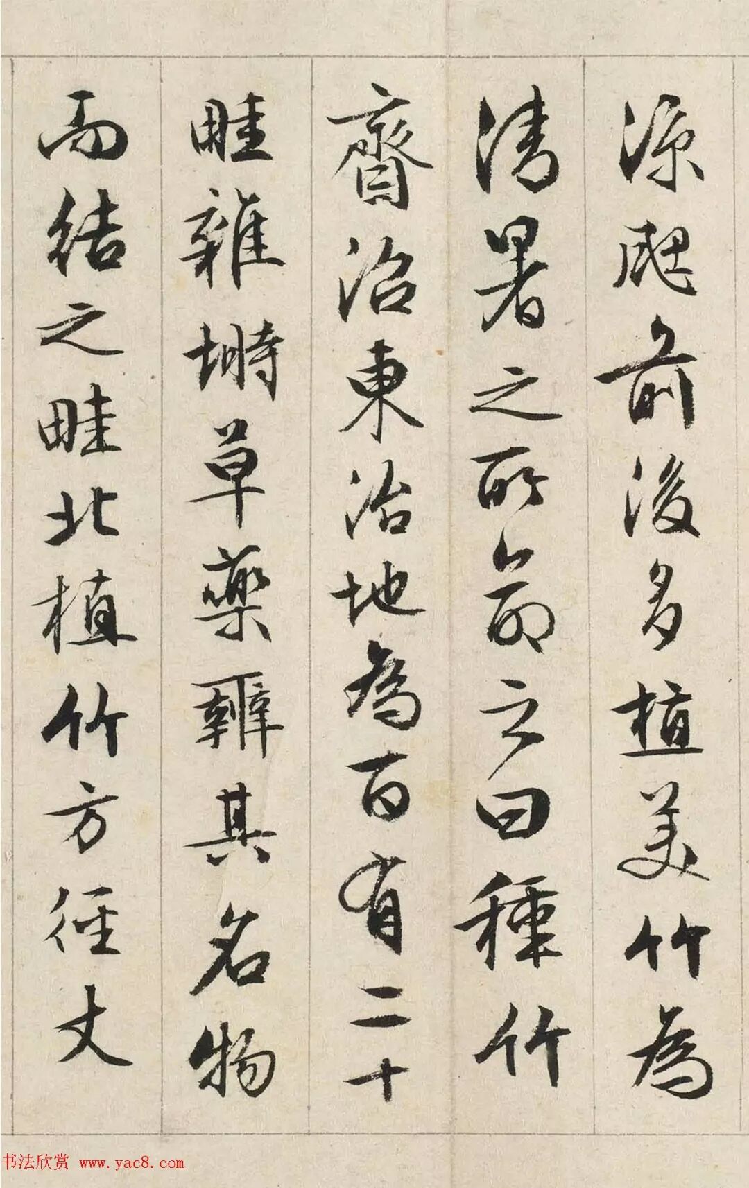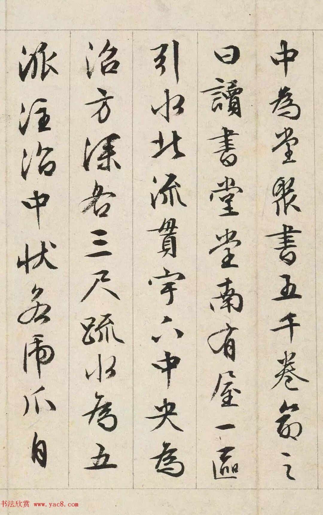 熙寧四年迂叟始家洛,六年,買田二十畝於尊賢坊北關以為園,其中為堂,聚書出五千卷,命之曰讀書堂。堂南有屋一區,引水北流,貫宇下。中央為沼,方深各三尺。疏水為五派,注沼中,若虎爪;自沼北伏流出北階,懸注庭下,若象鼻;自是分而為二渠,繞庭四隅,會於西北而出,命之日弄水軒。堂北為沼,中央有島,島上植竹,圓若玉塊,圍三丈,攬結其杪,如漁人之廬,命之日釣魚庵。沼北橫屋六楹,厚其墉茨,以禦烈日。開戶東出,南北列軒牖,以延涼颶,前後多植美竹,為消暑之所,命之曰種竹齋。沼東治地為百有二十畦,雜蒔草藥,辨其名物而揭之。畦北植竹,方若棋局,徑一丈,屈其杪,交相掩以為屋,植竹於其前,夾道如步廊,皆以蔓藥覆之,四周植木藥為藩援,命之日采藥圃。圃南為六欄,芍藥、牡丹、雜花各居其二,每種止種兩本,識其名狀而已,不求多也。欄北為亭,命之曰澆花亭。洛城距山不遠,而林薄茂密,常若不得見,乃於園中築台,構屋其上,以望萬安、軒轅,至於太室,命之曰見山台。