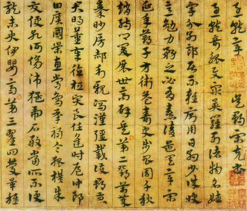 二是嚴格意義上已經規範化了的章草。字勢基本取橫勢,且每字中有明顯的波折特征,雖被認為是隸書的草化,其字法的成熟與嚴謹,顯然已(基本)衍變為一種新書體了。我們隻能從其明顯而誇張的波折來認同它與隸書的親緣關係,這一類作品以皇象急就章為代表,後世書家習章草者,宋克、趙子昂等多以此法為宗。規範化了的章草除了波折外,已經很少能見到隸書的痕跡了,用筆的提按使轉漸趨成熟,字法結構也更加嚴謹而精美,幾乎無異於行楷。”