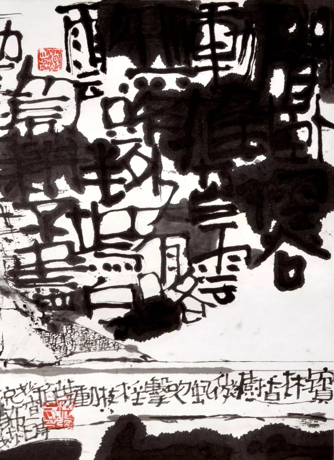在作品裏,朱鬆發先生讓傳統書法和水墨的精髓,麵向現當代,具有現代性的審美情趣,為書法和水墨在現當代的發展提供了新的方向 。觀此作品,有一種霹靂一聲天門開,天光雲影共徘徊,豁然頓悟的感覺。