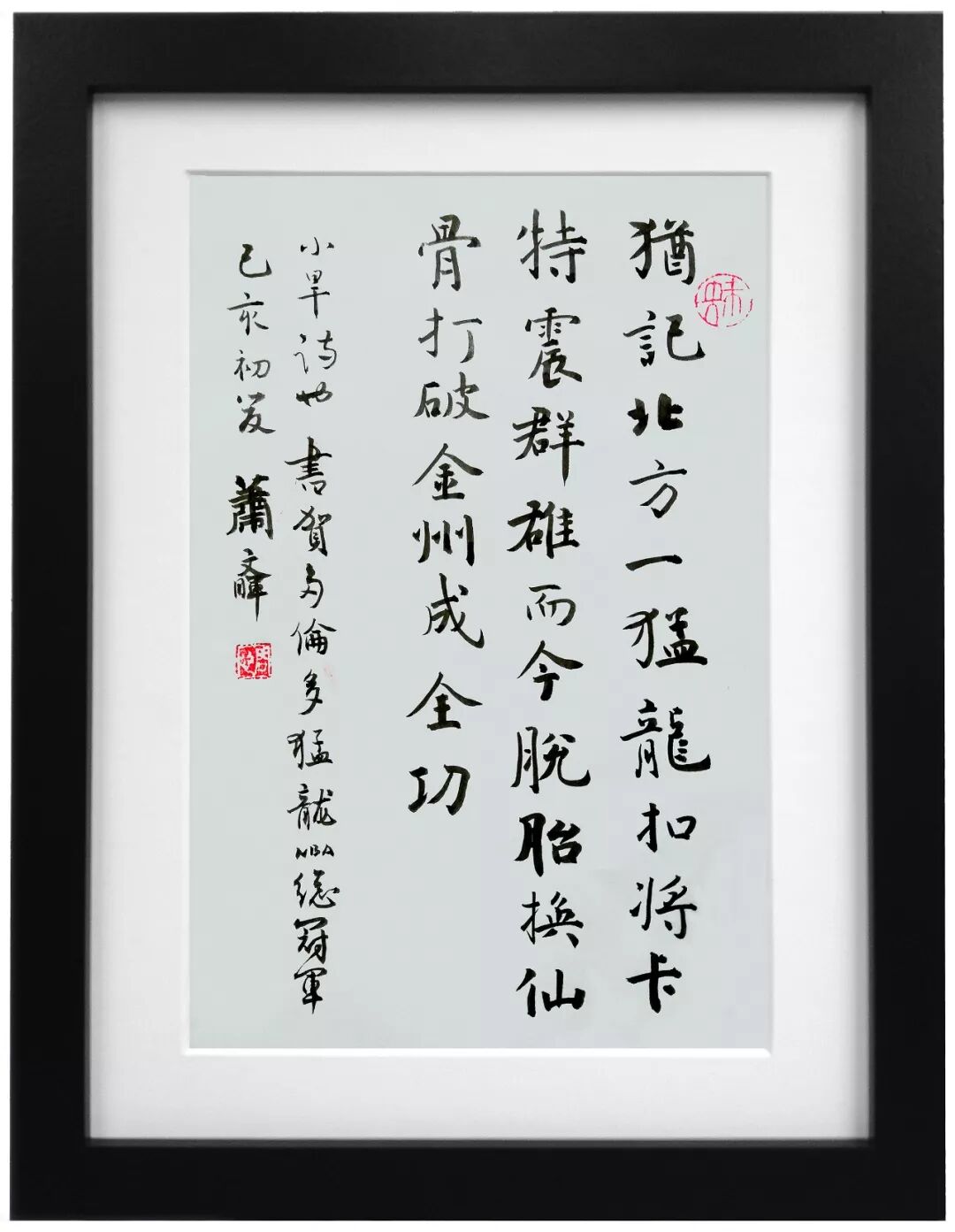 2019年6月13日,多倫多猛龍客場最終以114-110力克金州勇士,大比分4-2拿下隊史上第一個NBA總冠軍。對於多倫多的民眾而言,一貫優秀的冰球隊和擁有眾多粉絲的棒球隊曆來是心頭之好。此次,猛龍隊進入總決賽,無疑是欣喜異常的事,最終的奪冠表現更是讓整座城市近乎瘋狂。同樣瘋狂的還有來自四海書院散落於世界各地的球迷。他們中有猛龍的支持者,也有勇士的擁護者。他們醉心於比賽的精彩,也欣然於賽後用中國古典的詩書方式表達。