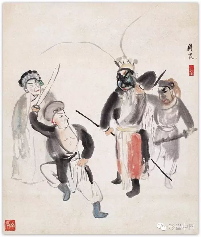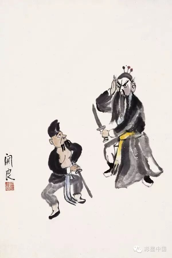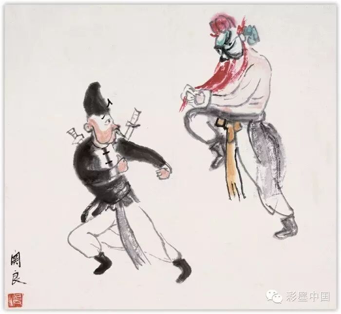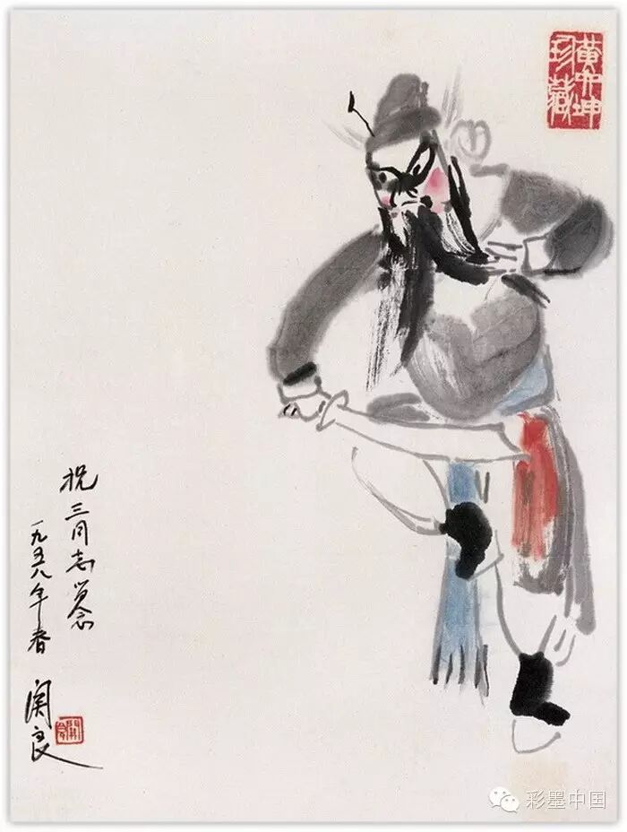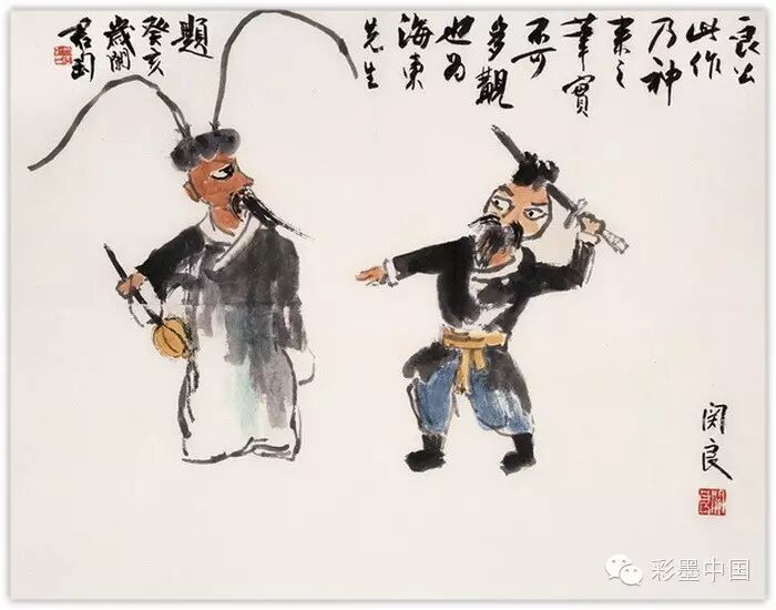 我最近喜歡上了京劇,並不內行,卻喜歡它的一唱三歎、低回婉轉的腔調。由此聯想到關良的水墨戲曲人物,更見其中的頓挫有致,趣味盎然。關先生看戲曲、畫戲曲,真個天賜良緣!