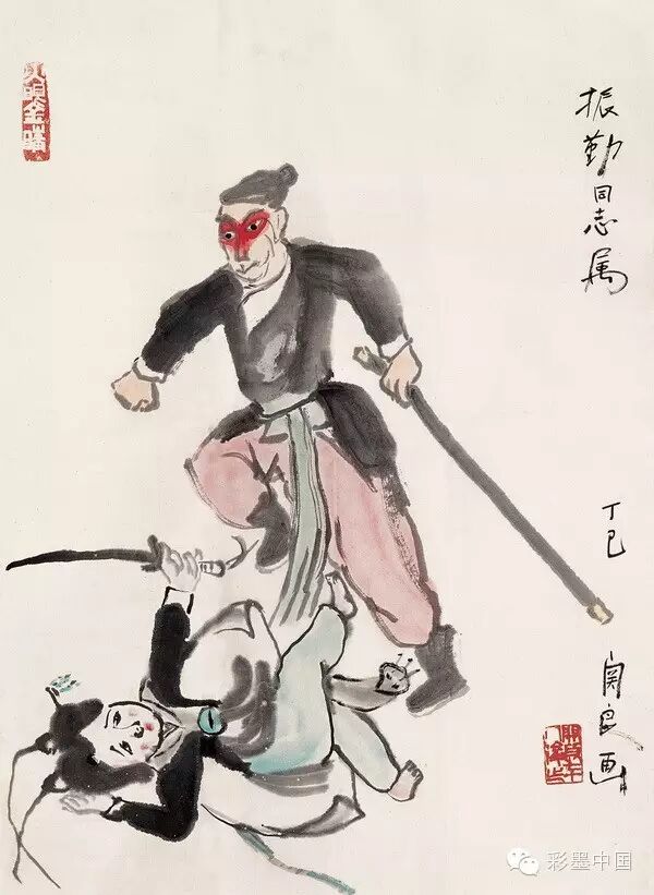 關良1900年生人,十七歲東渡日本學習西畫,五年後畢業於東京太平洋美術學校,同年歸國,先後在上海美專、武昌藝專等多所學校任教,抗日戰爭勝利後隨國立藝專返回杭州,任杭州國立藝專、浙江美術學院西畫教授。——從這簡曆中,曉得關良的主業是西畫,令他名氣更大的水墨戲曲人物似乎隻是友情客串。在近現代中國美術史上,像他這樣由畫油畫改畫中國畫的可以舉出很多,林風眠、劉海粟、吳冠中等都是如此。我想最大的原因是土壤問題,當然還有環境、受眾、年齡、材料等因素的影響。在那片土壤裏,生出了很多才情橫溢的畫家。關良何以能在曆史車輪無情碾過之後留下聲名?且隨時日更迭越發顯出獨特的價值呢?這引起了我的思考。
