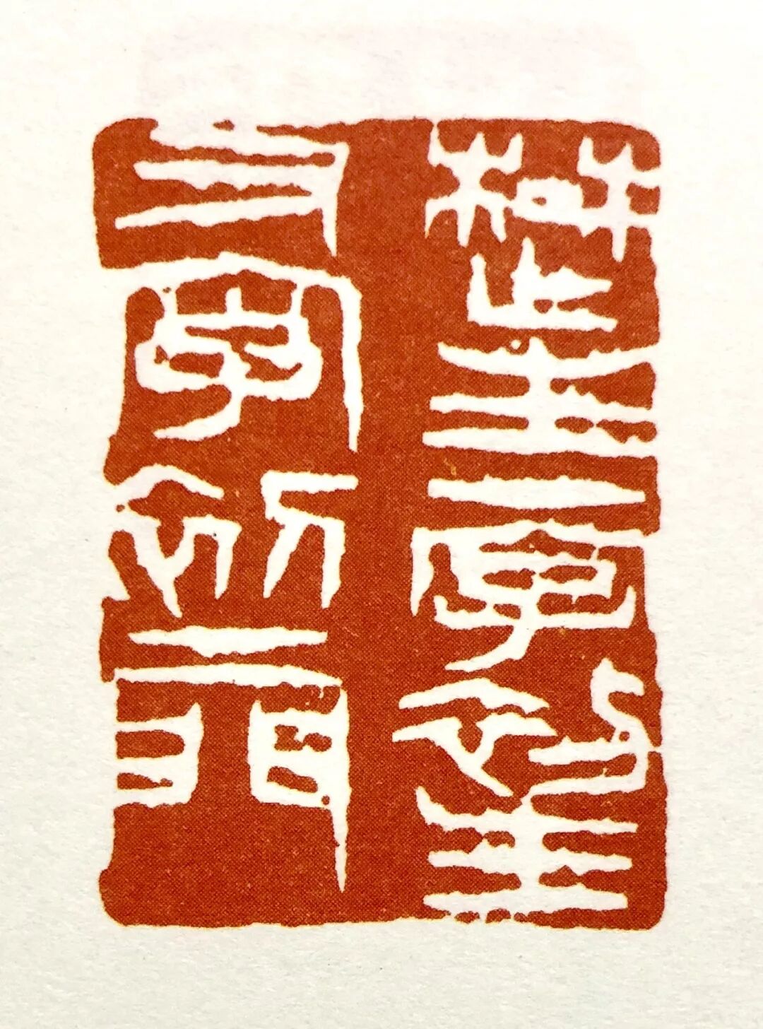 來先生常以書畫的格局入印。漢隸的結體特征,就是表現在橫向上的舒展和縱向上的緊湊,筆勢向兩側伸展。如他的自用印“西河同鄉”,不但“河”、“鄉”兩字上提,下麵留紅;“西”、“同”的字形也緊湊而上提,兩字下的留紅及“河”字的末筆都具隸書意趣,這樣鮮見的布局,實為先生獨創。至於“楚生一字初生,又字初升”一印,則更是來先生學習木簡的濫觴。