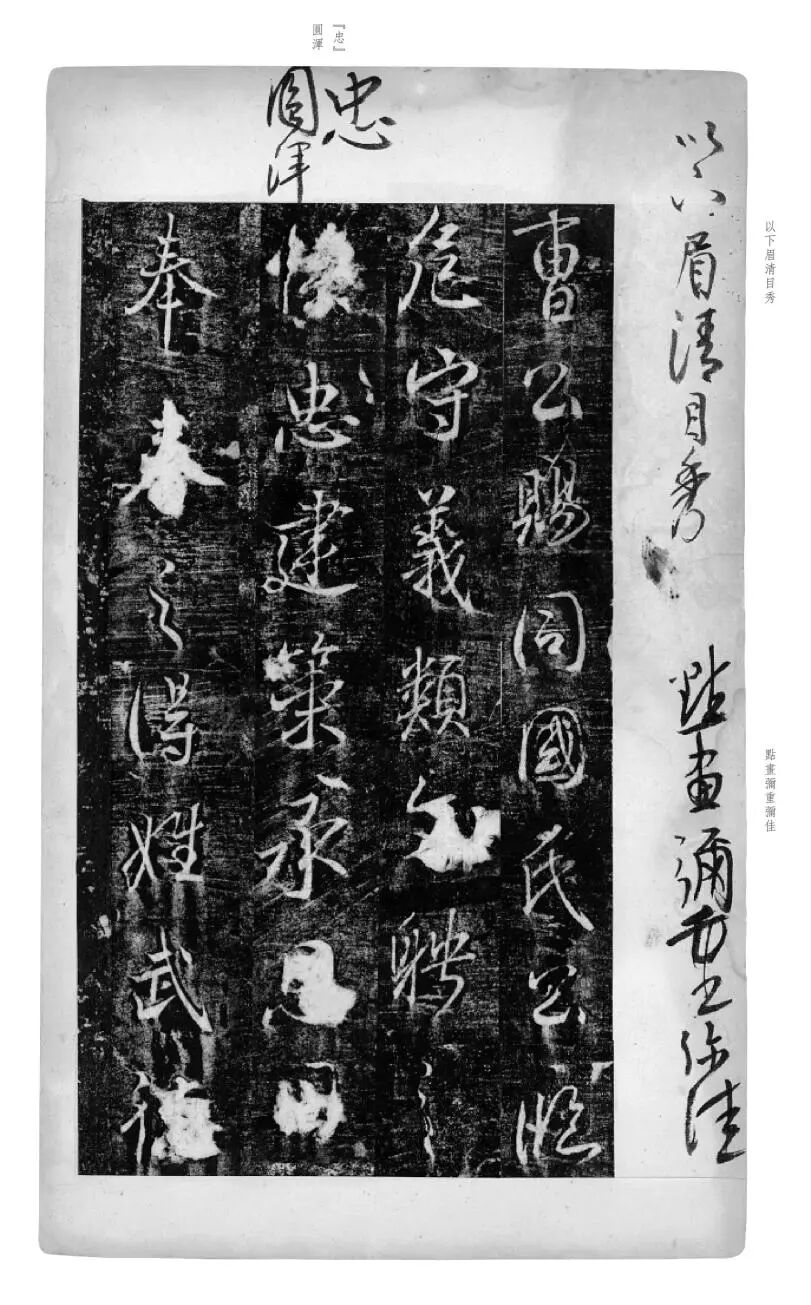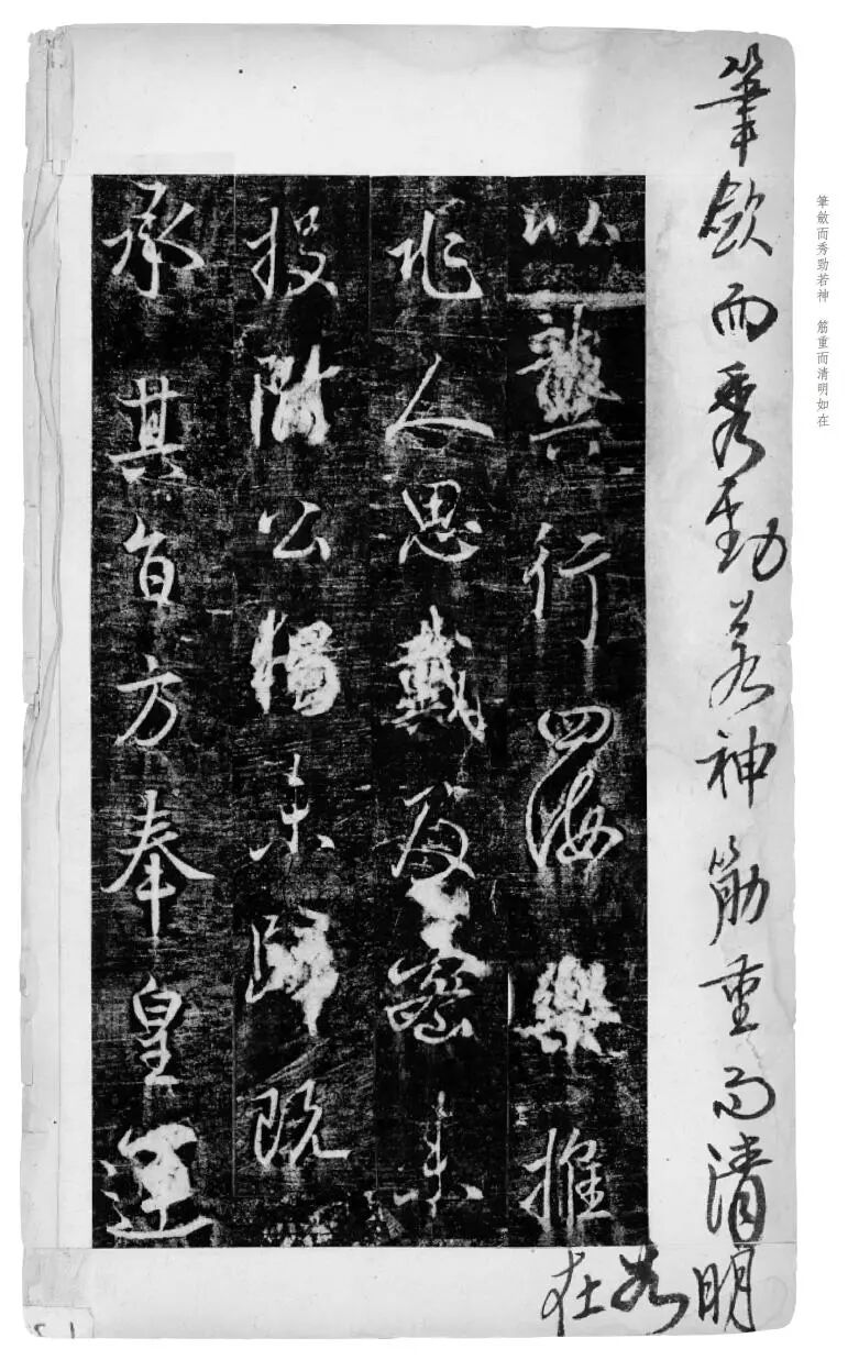書法墨跡和碑帖拓本是學習書法的兩大取法源頭,在麵對刻鑄文字的時候,必須結合對墨跡欣賞的經驗,把點畫的筆鋒使轉及其複雜的運動形象地補充其中,這才足以重現完整意義上的書寫過程。宋代薑白石曾言:“餘嚐觀古人名書,無不點畫振動,如見其揮運之時。”其實,這種讀碑帖的方法對於把握碑帖的總體特征是至關重要的,它可以直接準確把握其書法動勢最根本的玄奧之處。如二適先生批注雲:“(出)筆鋒活現,(緒言)諸字如見真跡,所謂毫芒畢露也。如見真跡,而無一筆輕忽,骨肉停勻。”等語句,都可看出其透過刀鋒力追筆意的識見和力圖想象回放書寫原貌的能力。“寫此要有斫陣筆勢,方為合作也。”一語,更加道破了此碑最突出的斬截爽健的用筆特征,足見高老對碑帖理解的準確和敏感。