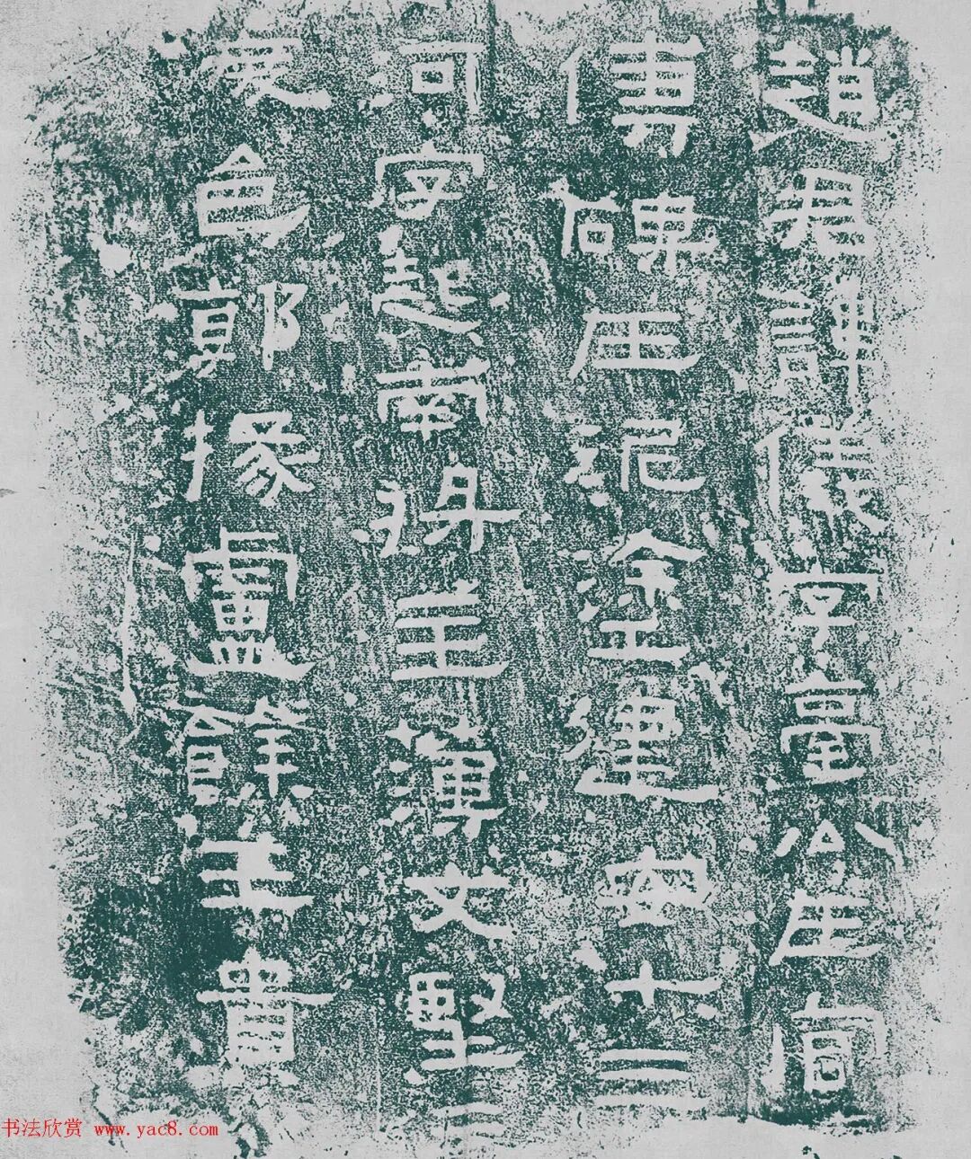 《趙儀碑》刻於建安十三年(公元208年)十一月廿日癸酉,2000年6月,四川蘆山縣在舊城改造挖地基時出土。《趙儀碑》發現時碑已鑿斷為三塊,長、高分別為112、53厘米、115、50厘米、115、53厘米,經過拚接,大體可窺全貌。碑正麵銘文已漫漶不清,然碑陰隸書五列一百餘字保存甚為完好,字口清晰,有如新刻,這在目前國內所存漢碑中絕難見到。