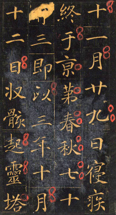 唐代墓誌書法進入高宗朝後,漸見妍逸,趨於暢朗,盡脫陳隋遺製,融有唐一代新風,多秀勁寬博,華潤有加。此誌書法娟秀雅麗,至清代終為王澍、毛鳳枝、葉昌熾所推重。《虛舟題跋》曰:“其書法特為瘦勁,大類褚公。”《語石》有“今世所珍者,莫如《磚塔銘》”之評。康有為《廣藝舟雙楫•幹祿第二十六》則曰:“近代法趙,取其圓美而速成也。然趙體不方,故鹹、同後多臨《磚塔銘》,以其圓勁滑利,作字易成。”