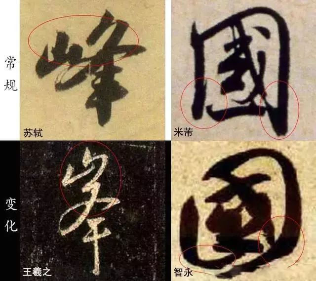 為了行筆便利,改變楷書先上後下、先左後右的筆順,變為先下後上、先右後左。