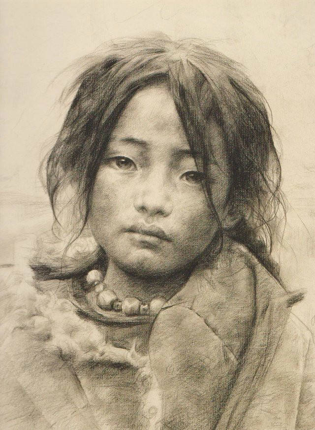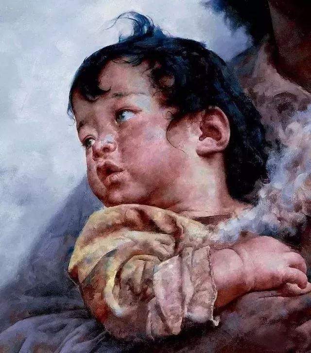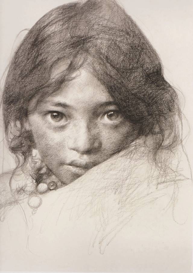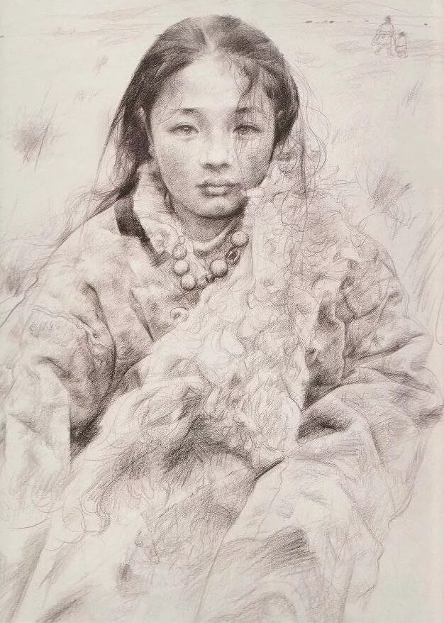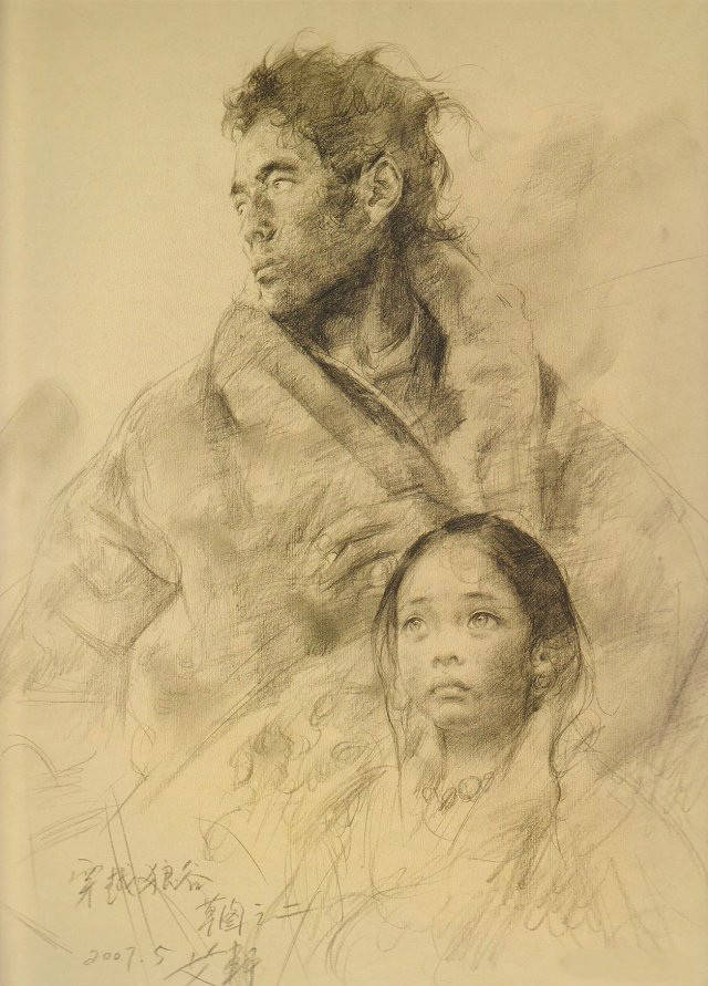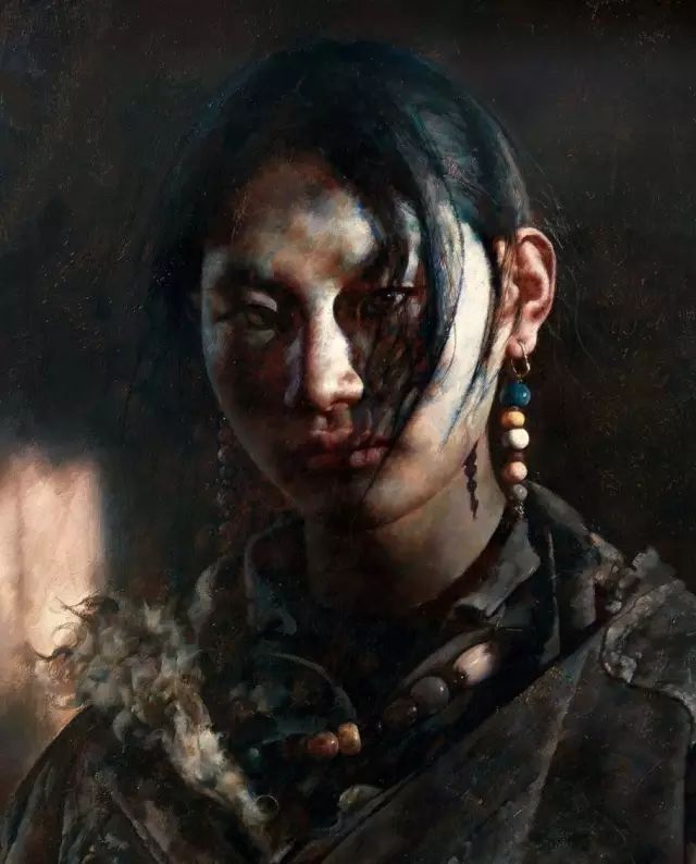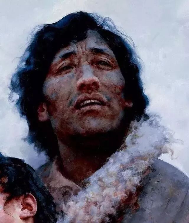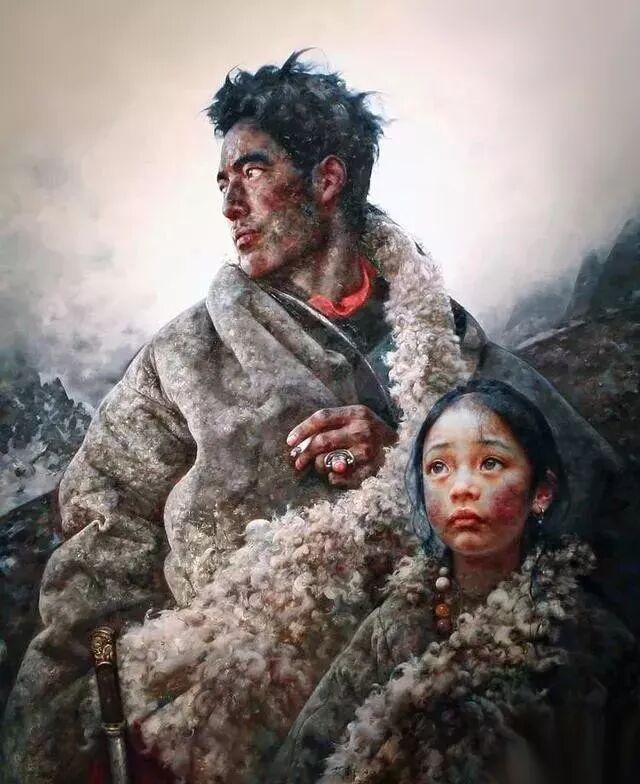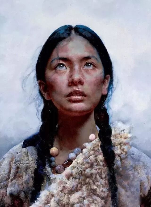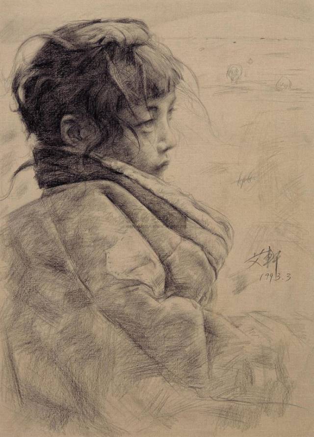 獨自一人在一望無際的草地、雪野、荒原,他(她)們的生活以及大自然,似乎皆要避開觀眾的視線。在極少的情況之下麵對觀眾的形象(如《凍土帶》)也用冷漠和陌生的眼光,靜觀這與他(她)們有隔閡的世界。艾軒在寫實的物象中寄托了自己的思緒和感情,他用借景寫情的方法,創造出一幅幅情景交融的、有意境的畫麵。
