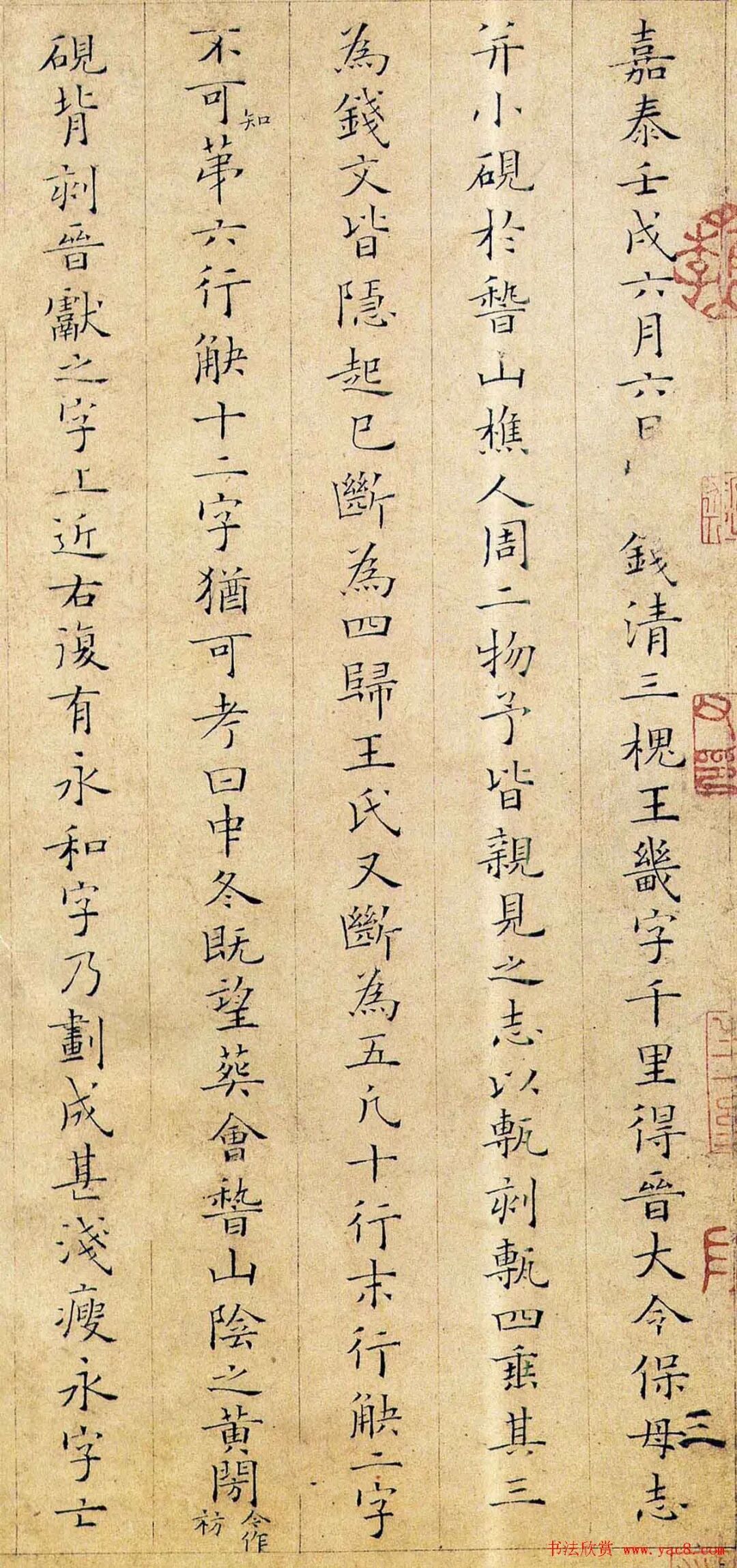 薑夔小楷欣賞《跋王獻之保母帖》紙本,長31.6cm,全文計101行,故宮博物院藏。