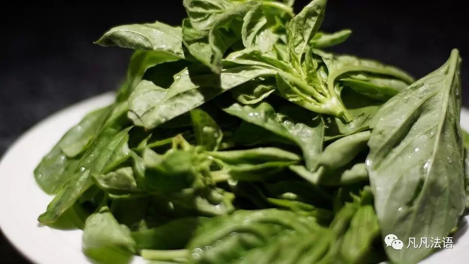 要做一盤美味的青醬“菲塔契尼”,首先要70克左右的新鮮羅勒葉子,叫Basil。千萬不要和另一種叫Thai Basil的九層塔搞混了。九層塔也叫金不換,是越南粉和三杯雞中不可缺少的配料。除了香氣不同,區別這兩種Basil最簡單的辦法就是,梗的顏色不同,九層塔是紅梗,而羅勒是綠梗。