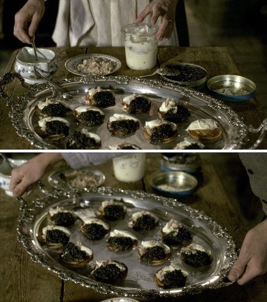 電影《芭比的盛筵》(Babette's Feast)這個故事發生在19世 紀丹麥東海岸的一個偏遠貧苦的村莊。一位牧師帶著他的兩個女兒,和一群清教徒的村民,過著嚴謹平實的生活。他們穿著簡樸,每頓僅僅吃清水煮幹魚配上麵包糊 糊。對於他們而言,生命的全部意義都在於對甜美天國的向往,而地上的日子,似乎僅僅是一個必須忍受的短暫旅途。為了信仰的家園,世俗的享樂是應該放棄的。