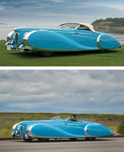 經典的1949 Delahaye 175 saoutchik Roadster 肌肉車,勇往直前的流線型設計和完美的外觀配色。