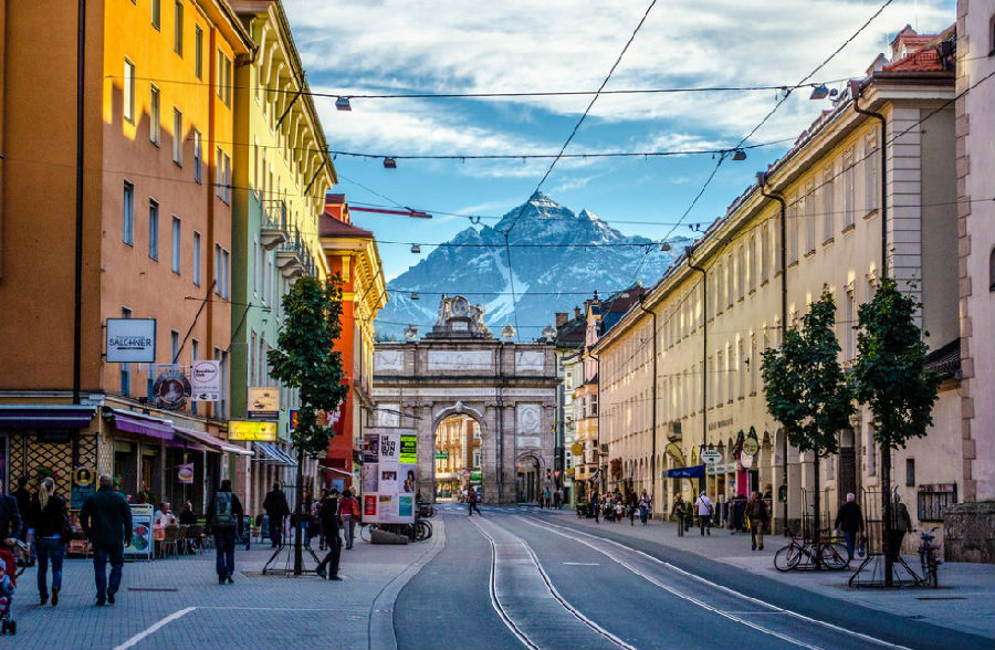 因斯布魯克坐落在阿爾卑斯山穀之中,小城仍然保持著中世紀城市的容貌,古建築和阿爾卑斯山雪峰交相輝映。因斯布魯克氣候溫和,所以說四季都適合旅遊。施華洛世奇(Swarovski)天鵝牌水晶的總部所在地就位於因斯布魯克附近,正是雪山與水晶相輝映的天堂。