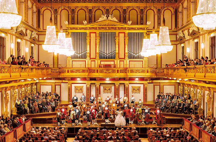 如果你對音樂充滿向往,來到維也納,估計你不會錯過維也納金色大廳。維也納金色大廳是維也納最古老、最現代化的音樂廳。是每年舉行“維也納新年音樂會”的法定場所。金色大廳是意大利文藝複興式建築。外牆黃紅兩色相間,屋頂上豎立著許多音樂女神雕像,古雅別致。維也納交響樂團每季度至少在此舉辦12場音樂會。金色大廳是世界音樂殿堂,是每個音樂家夢想之地。