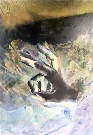 在《協商》(Verhandlung)畫麵中,一個巨大的手呈“OK”狀,在背景強光的襯托下,那個“OK”的圓心中間,赫然站著一個希特勒時代典型的行納粹禮的黑色身影。稍微了解德國那段曆史的人能很快從這個身影中判斷出,那個行禮者正是安賽姆·基弗(Anselm Kiefer)。