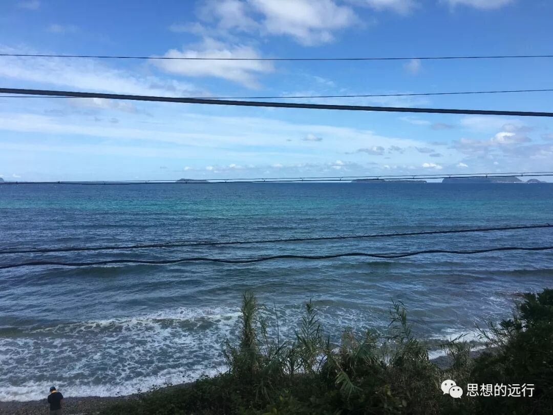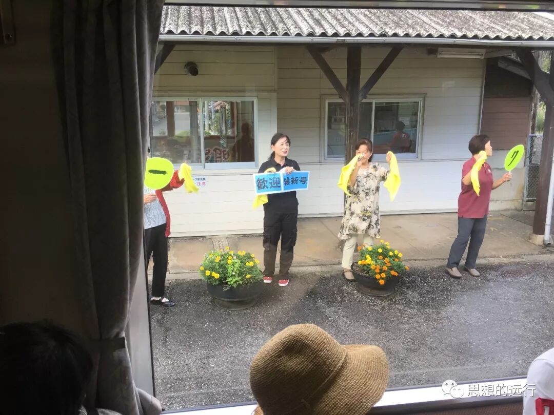 我從福岡坐新幹線到厚狹(ASA),在那裏轉往去萩的火車。沒有想到這是個小火車,兩節車廂的長度,車身上寫著明治維新一百五十年。路上基本是在山間,海邊,田野裏穿行。