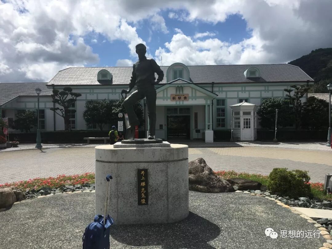 在萩站的門口,是長州五傑之一井上馨的雕像。萩的維新名人那麽多,為什麽這裏隻是他的雕像呢,我想是因為這裏是火車站,井上馨是日本的鐵路之父。