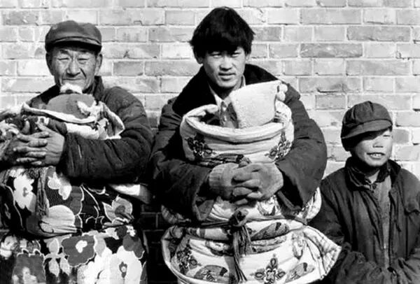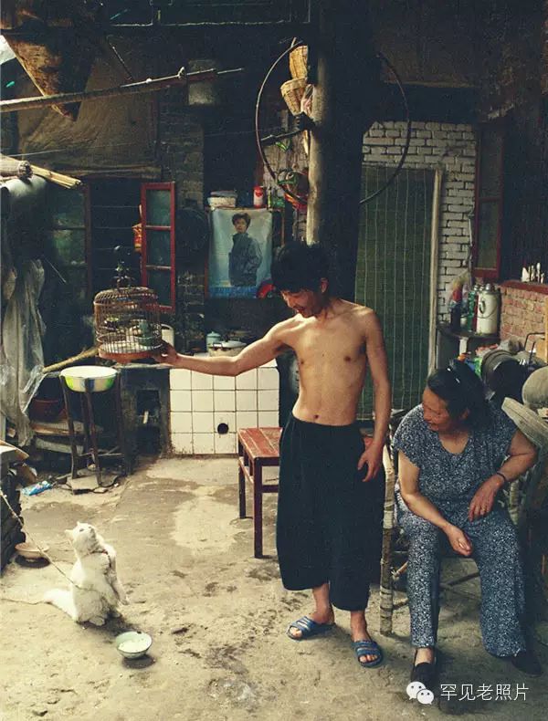 1989年,河南濮陽,農村大老爺們帶孩子。