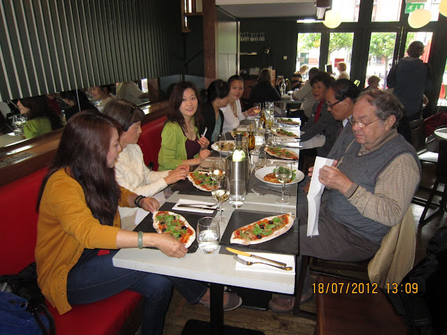 昨天(2012年7月18日)算是我們新成立的吃喝團第一次正式活動吧,在此之前組織過一次去日本餐廳就當預演了。這次我們在意大利餐廳(Strada)共進午餐。這家和Jamie's Italian一樣都是很受歡迎的意大利連鎖餐廳,食品是以簡單新鮮美味著稱的。大家點了不同的午餐,risotto(意大利調味飯),薄底比薩,還有lasagne(意式寬麵或叫意式千層餅)等,雖比較簡單但味道不錯。