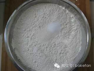 麵粉和水的比例為2:1,麵粉和酵母的比例為100:1,所以在500克溫水(1瓶礦泉水的容量)裏加入酵母10克、白糖少許。