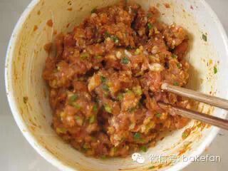 我又加入老抽、自製油辣子、剁碎的豆瓣醬,調了一個香辣肉餡,老公喜歡重口味。
