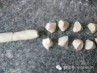 取揉好的麵團一塊,搓成長條,橫豎方向反複轉動著切,可以切成大小比較均勻的小劑子。
