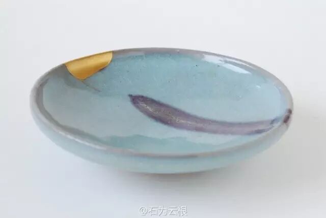 金繕與字麵意思相同,即用金修繕的意思,用大漆作為粘合劑和塑型劑,把破損的器物重組完成,再將金粉或者金箔貼於表麵,稍做設計,使之與其器物本身的氣質相符合。甚至達到原物沒有的絕美。