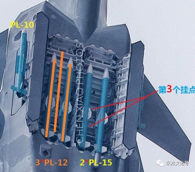 東方# 而之前,我們說了,彈倉,是”死“的,但導彈是”活“的,一,同一彈,其本身可以不斷進步,性能,尺寸,都可以進步,二,除了四枚PL15,殲20腹部還可掛其它彈