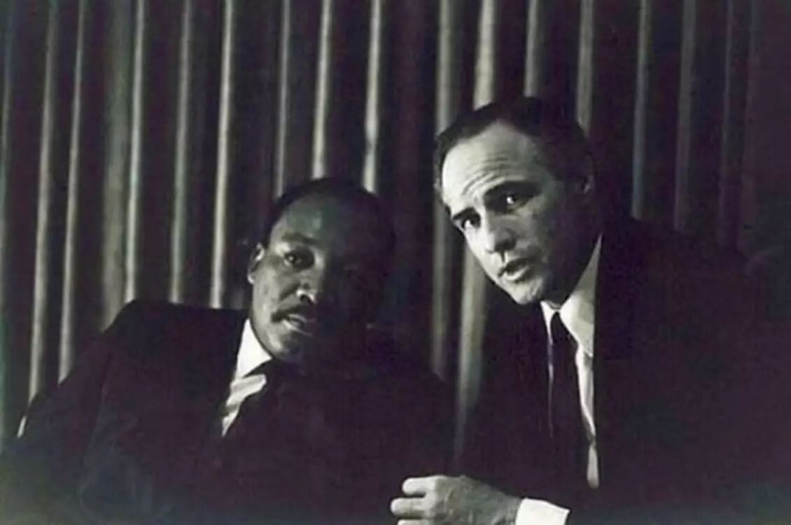 馬丁·路德·金與馬龍·白蘭度(《教父》主演)