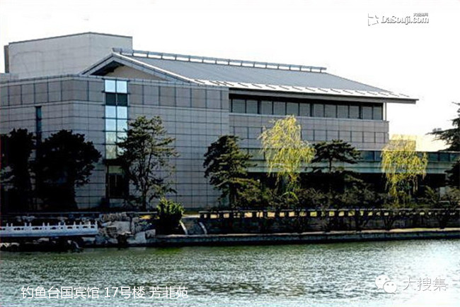 釣魚台國賓館環境幽雅清寧,樓台亭閣間碧水紅花、林木石橋,是中國古典建築情趣與現代建築格調的完美融合。
