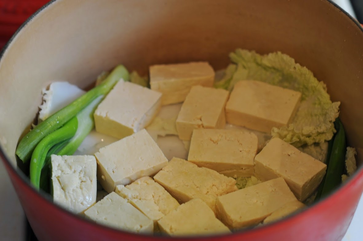 帥鍋拿出,先放一勺橄欖油,鋪上一層白菜葉,兩根蔥,再鋪一層豆腐幹,加一粒元貝(增鮮),最後鋪上包好的肉丸, 加兩碗高湯(或水),少許醬油,4、5 粒冰糖, 煮滾,開口轉小火小沸半小時至45分鍾,稍收汁即可,噴香入鼻。這一步就是自由發揮了,香菇、海帶節、胡蘿卜。。。喜歡啥盡管往裏扔,來著不拒,亂燉一氣皆好味。
