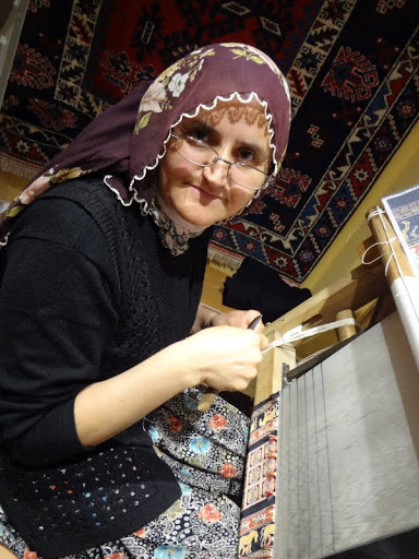 手織地毯工廠展出他們的產品