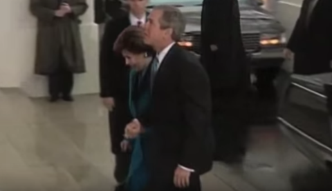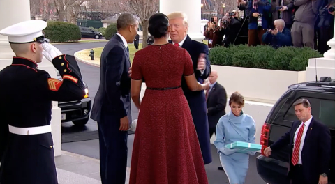 But it wasn't the box that caught my eye — it was the way he left his wife behind him as he made his way up the steps. The Independent pointed out how our new president's actions differed from his predecessor's on the same day in 2009, and I delved further into the presidential inauguration archives to see how George W. Bush and Bill Clinton approached the moment before their inaugurations (video of earlier presidents' White House Inauguration Day arrivals was not readily available online).