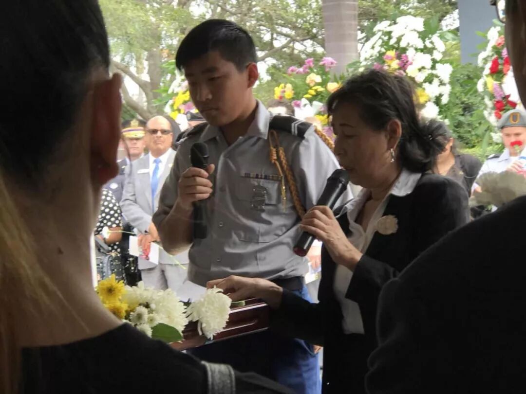 美國華裔華人小英雄PETER WANG20日在佛州舉行榮譽軍事葬禮儀式。王孟傑被授予陸軍英雄勳章,並被西點軍校錄取為2025年榮譽畢業生。