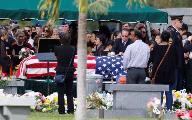20日,王孟傑的棺木覆蓋美國國旗,6名預備役軍人為他扶靈。