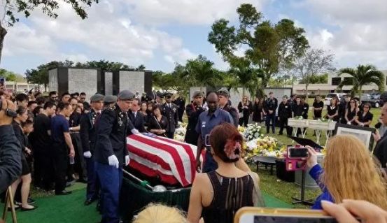 這是在佛州高中槍擊案中舍己救人的華裔少年王孟傑周二(2月20日)下葬時令人心酸的一幕。