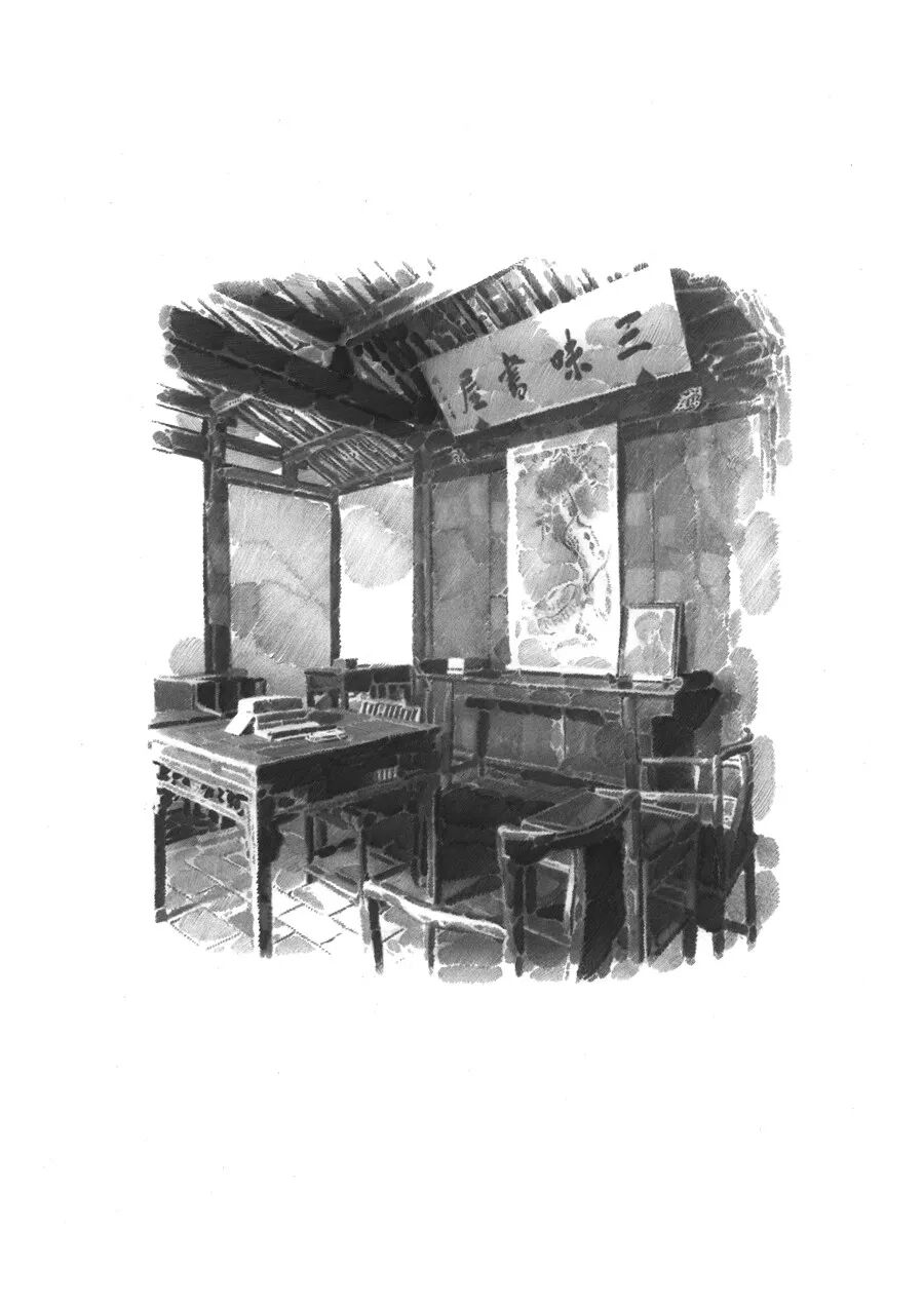 在李晨的工作室裏,到處堆滿了書籍和影像資料,他指著窗台上厚厚的五摞書告訴記者,這是他正在創作的梁思成林徽因係列組畫的一部分參考資料。在他的工作室裏找不到任何潮流炫酷的東西,除了書畫就隻有一隻大灰貓靜靜地伸著懶腰,陪伴他創作的分秒。