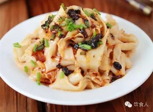 7.在麵上放入豆豉油辣椒醬,調稀的花生醬,撒上蔥花,把油燒熱後澆在麵條上發出哧哧的聲音就可以攪拌吃了。