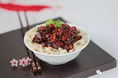 原料:五花肉,黃豆醬,甜麵醬,料酒,生薑,蔥花,醬油,麵條