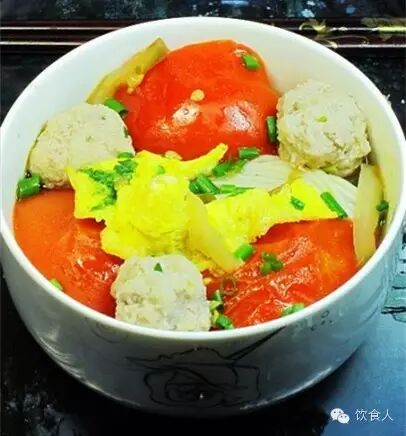 原料:番茄,炒好的雞蛋塊,榨菜,肉圓子,麵條,鹽,雞精,蔥花