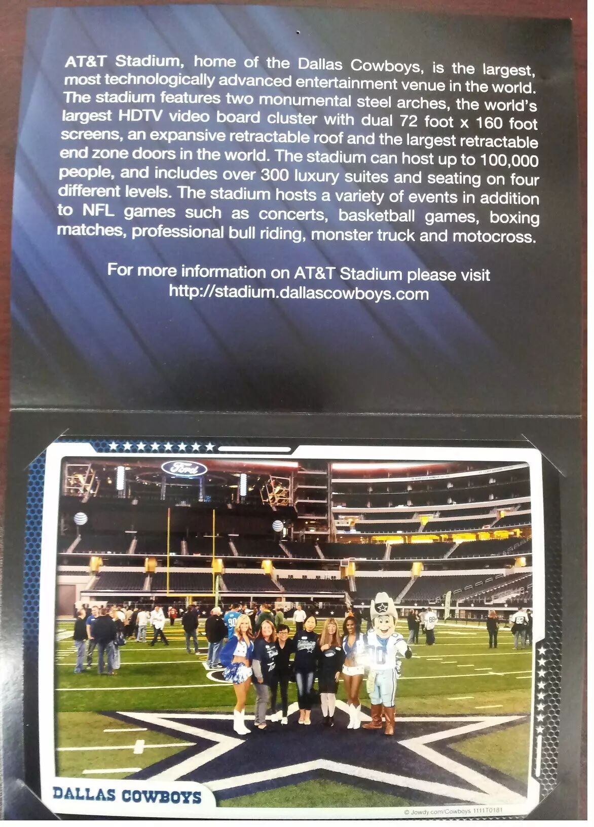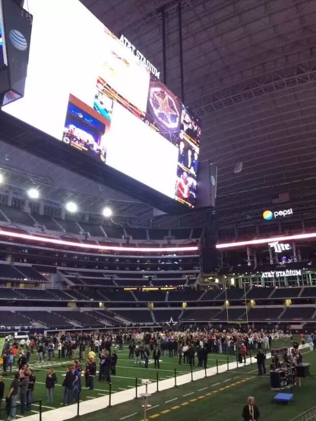 最近一次超近距離接觸NFL是在達拉斯牛仔隊Cowboys體育館。前年公司在達拉斯辦用戶大會,活動主題就是NFL。我們在牛仔隊體育館,包了整個場子,還請來牛仔隊曾經著名的四分衛, NFL 名人堂成員Troy Aikman。牛仔隊體育館是09年建的,現冠名為AT&T體育館,據說是世界上最大的穹頂建築(室內無支柱),體育館中心高懸著曾是世界上最大的高清屏幕。牛仔隊是所有職業球隊中運作最成功最值錢的一支,也是一個相當有價值的品牌,市值估價四十億美金,年收入6億多。