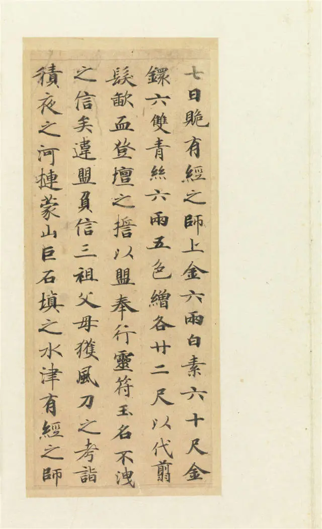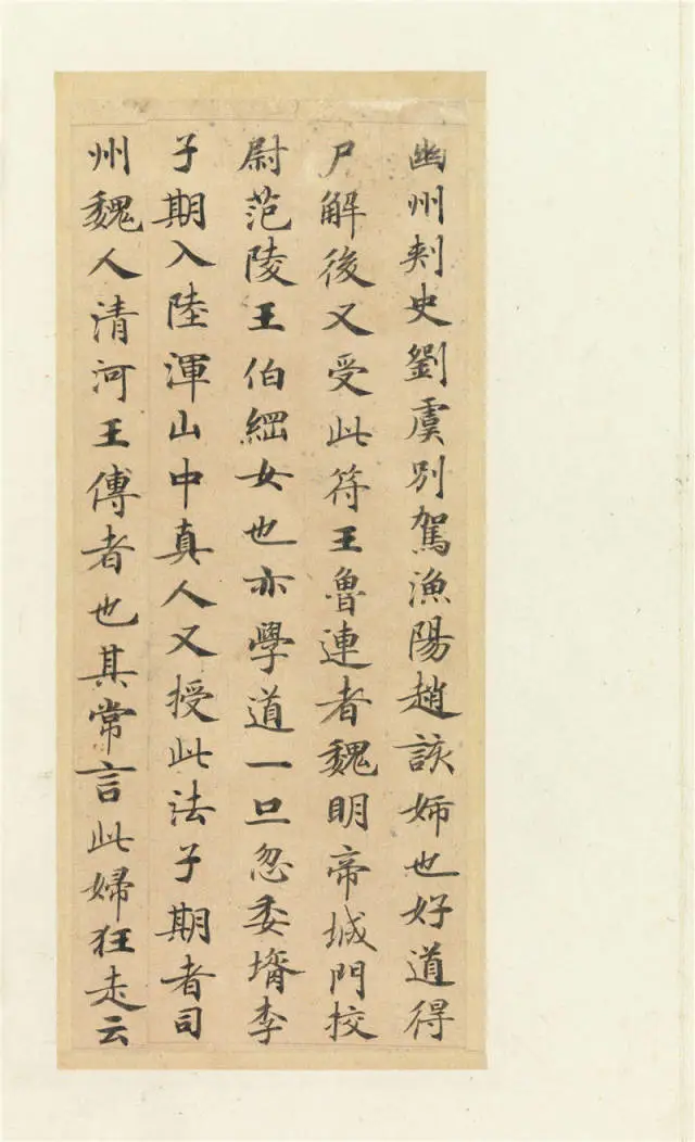 清代中期陸續有少量的唐人寫經墨跡出現,書家對這種墨跡的重視,也逐漸加強。例如王文治得律藏經,屢次談到印證其筆法。成親王、吳榮光也屢次題跋讚賞一個分了許多段的《善見律》卷。這些寫經墨跡,也曾被摹刻在幾種叢帖中。但它們的聲威,都不及靈飛的顯赫。原因何在,當然《渤海》】傳播的既久且廣是一個因素,而仔細對校那幾種寫經,它們的風采變化,確有遜於《靈飛》處。即在今天,拿敦煌所出、日本平安朝所遺的寫本來與《靈飛》比較,《靈飛》仍然可以敢當那一比,而不輕易出現遜色。那麽這四十三行經得起多方比較的傑出藝術品,在今天印出,我都替那位無名英雄的書手,感覺自豪: