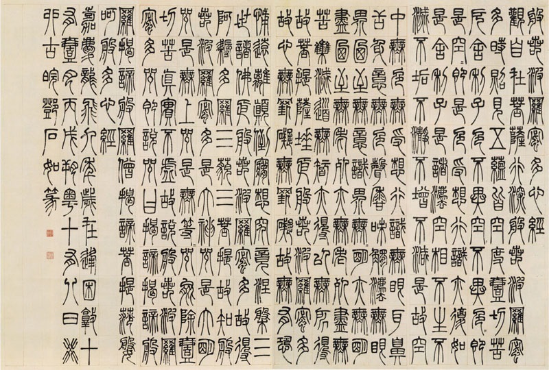 篆書是篆刻藝術取之不盡、用之不竭的源泉,是其發展壯大的重要支撐點。清人王琪題《菌閣藏印》中說:“論印不於刀而於書,猶論字不以鋒而以寫。刀非無妙,然胸中應有書法,乃能迎刃而解也”。趙之謙也指出“古印有筆尤有墨,今人但有刀與石”,當代篆刻大家韓天衡對篆刻也要求表現“刀三味,筆三味,墨三味”的核心要旨。從古至今,篆刻開宗立派大家無不具有深厚的綜合修養與獨立的篆書風格屹立於中國篆刻印史上。