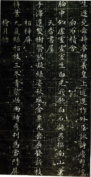 中期:少波磔,多溫潤。一麵受“台閣”時風的影響尚工整。一麵受歐體影響,謹嚴勁健,卻又失之緊密板滯。