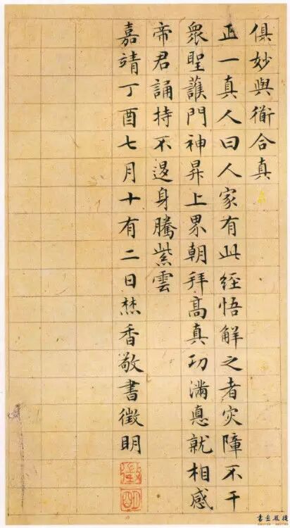1.文徵明的小楷造詣最高。主要師法傳為王羲之的《黃庭經》、《樂毅論》以及鍾繇《宣示》,王獻之《十三行》等,又能融入唐人小楷筆法於一爐,形成“溫純精絕”的自家風貌。